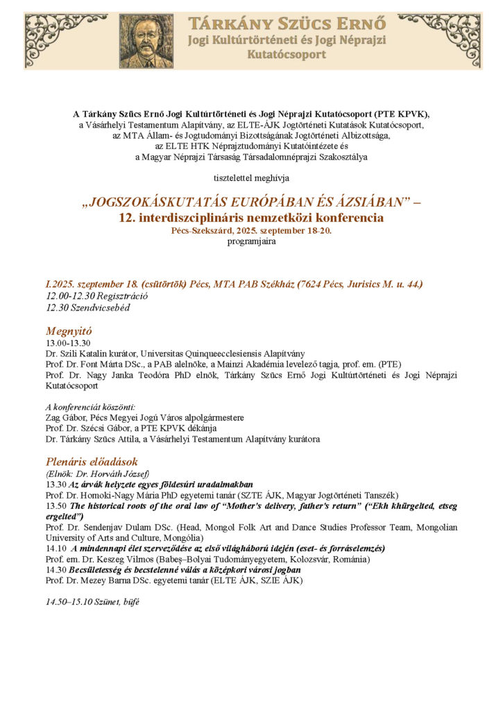 © 2025 Tárkány Szücs Ernő Jogi Kultúrtörténeti és Jogi Néprajzi Kutatócsoport